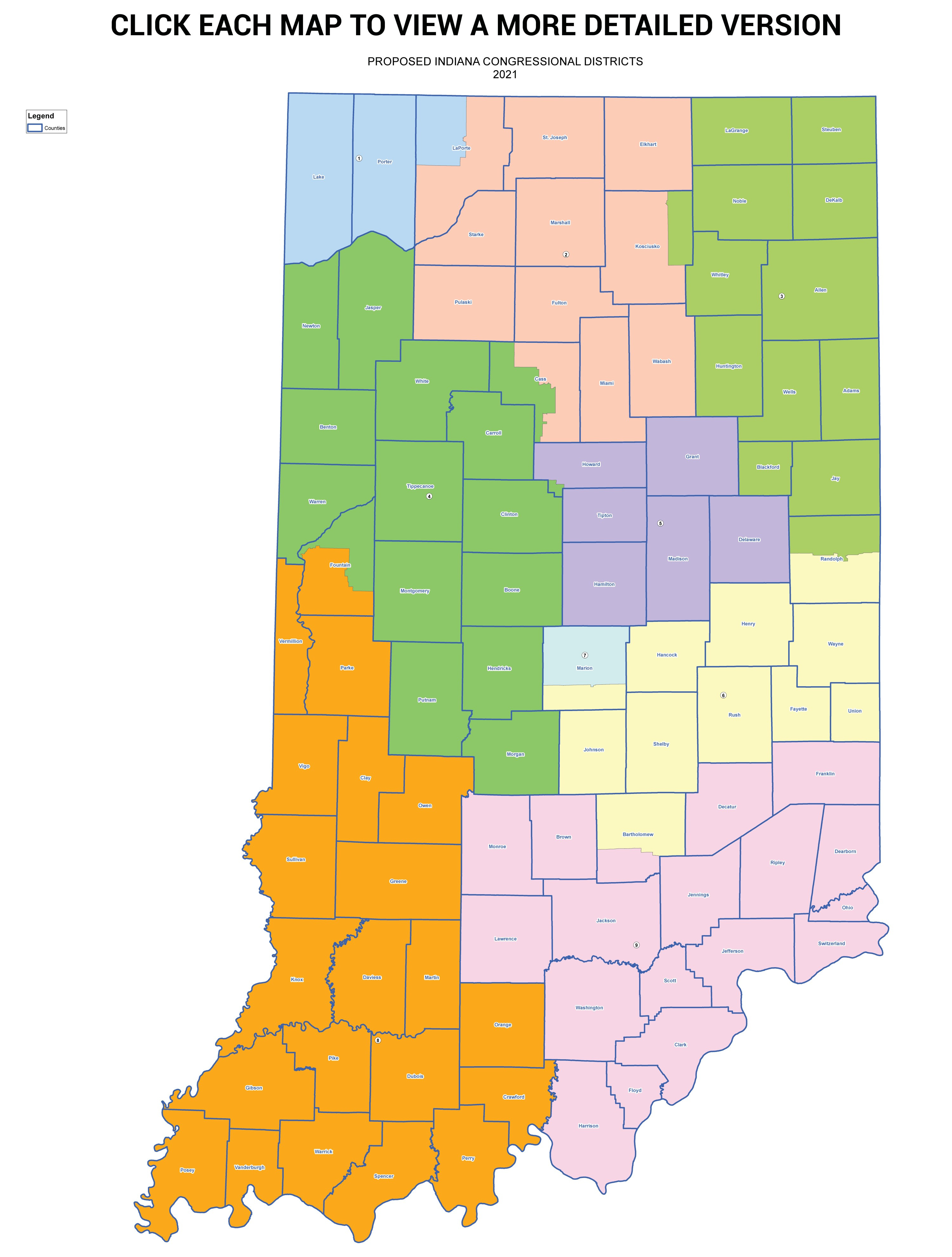 Republican state legislators approved another map in 2021 that was once again a model for the nation: Compact districts that follow county lines. Indiana's map is not gerrymandered, and still resulted in a 7-2 Republican majority. There is no need to re-draw Indiana's Congressional district map, and the only way to do that now is to dump a bunch of Democrats in East Chicago, Indianapolis and Gary into neighboring Republican districts and put Republican incumbents in jeopardy. A newly gerrymandered map would look just as bad as the 2001 Democratic map that drew so much derision for the absurdly-drawn Fourth District.