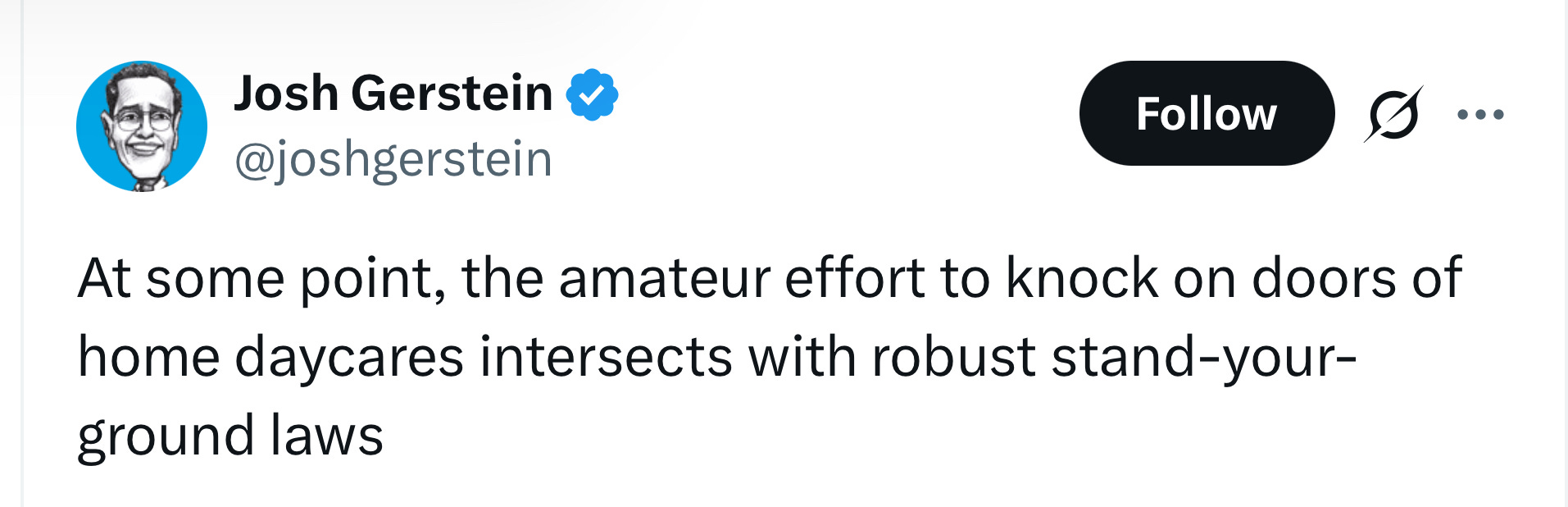 At some point, the amateur effort to knock on doors of home daycares intersects with robust stand-your-ground laws