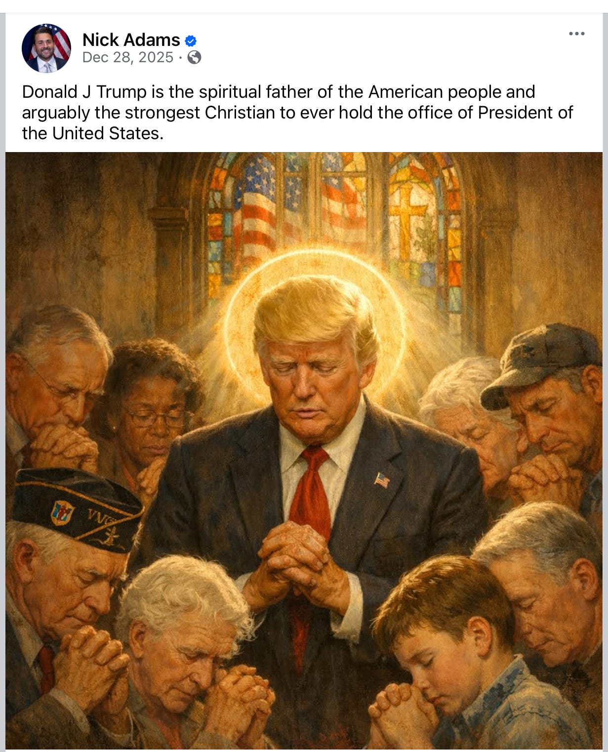Here is another reason: President Trump "is the spiritual father of the American people and arguably the strongest Christian to ever hold the office of President of the United States."